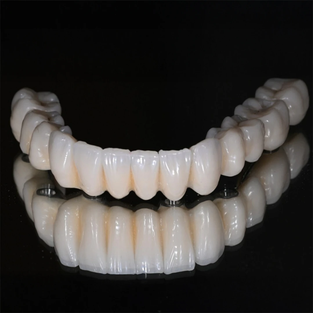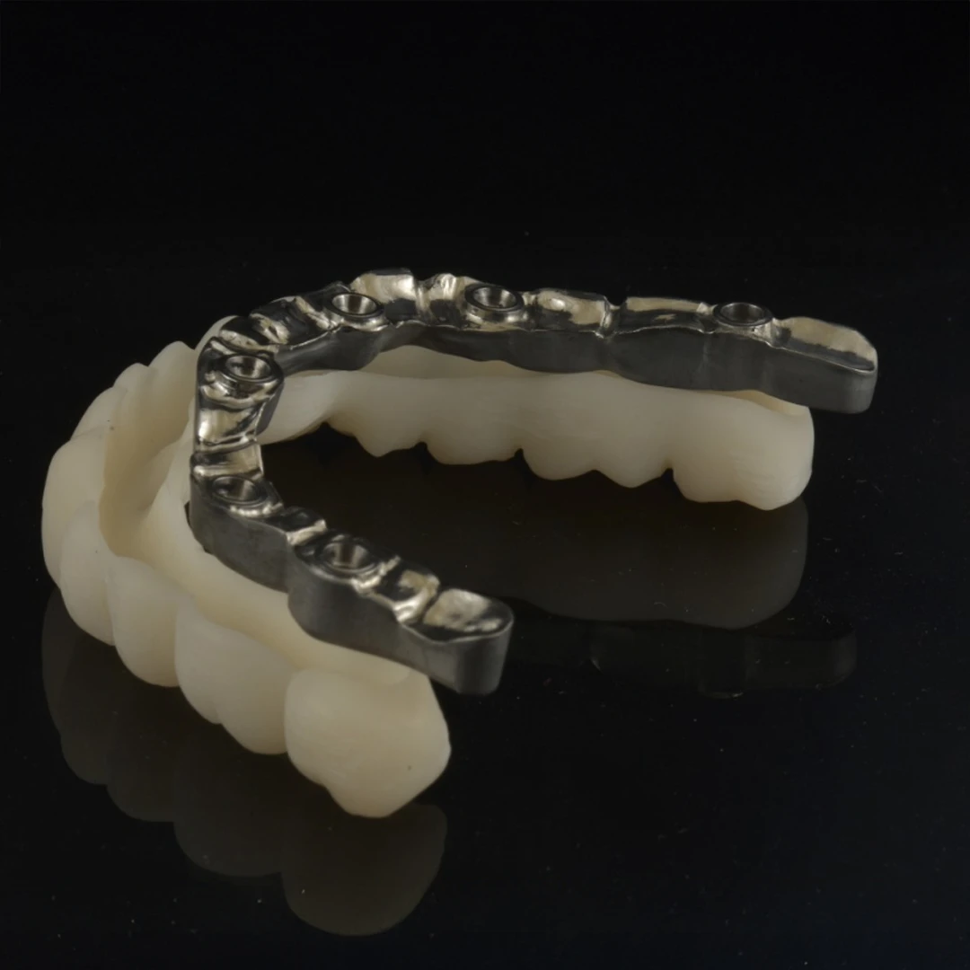 • nadbudowy implantologiczne (abutmenty hybrydowe, korony na implantach).