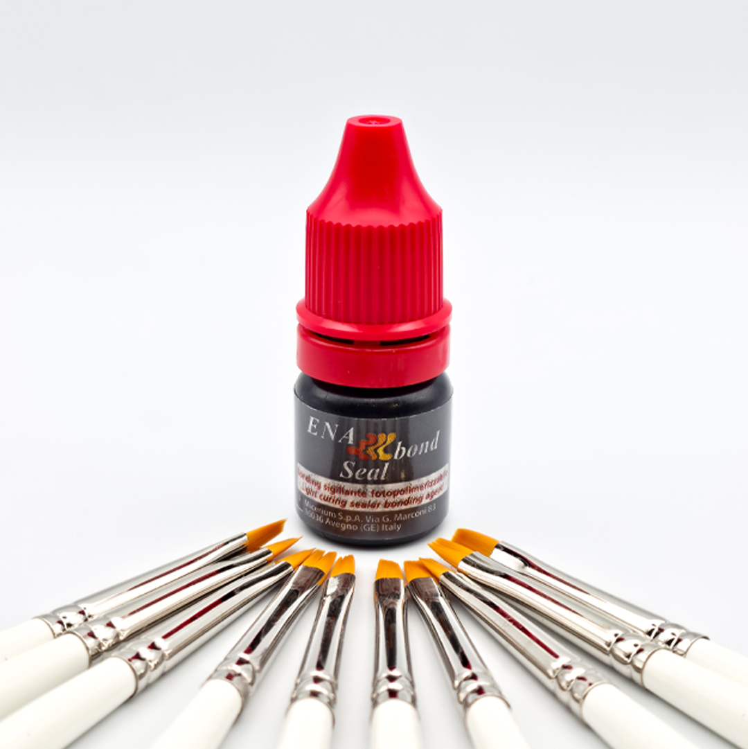 ENA Seal to syntetyczna żywica bez wypełniacza, która służy do zwilżania narzędzi w trakcie modelowania wypełnień kompozytowych. Dzięki zastosowaniu ENA Seal materiał nie będzie kleił się do narzędzi! Pozwala również na odtworzenie połączenia pomiędzy utwardzonym, a dodawanym materiałem tuż po przeprowadzonej korekcie!